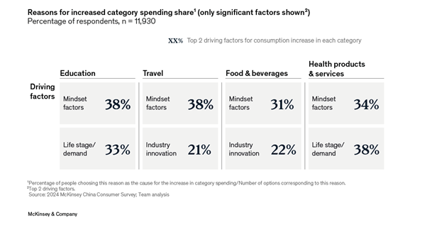 Chinese consumers are increasingly valuing experiences over tangible products. According to the 2024 McKinsey China Consumer Report, categories such as education, travel, food and beverages, and health products and services are witnessing significant growth. This shift is driven by a desire for personal enrichment and fulfillment, which experiences and services provide more effectively than physical goods.