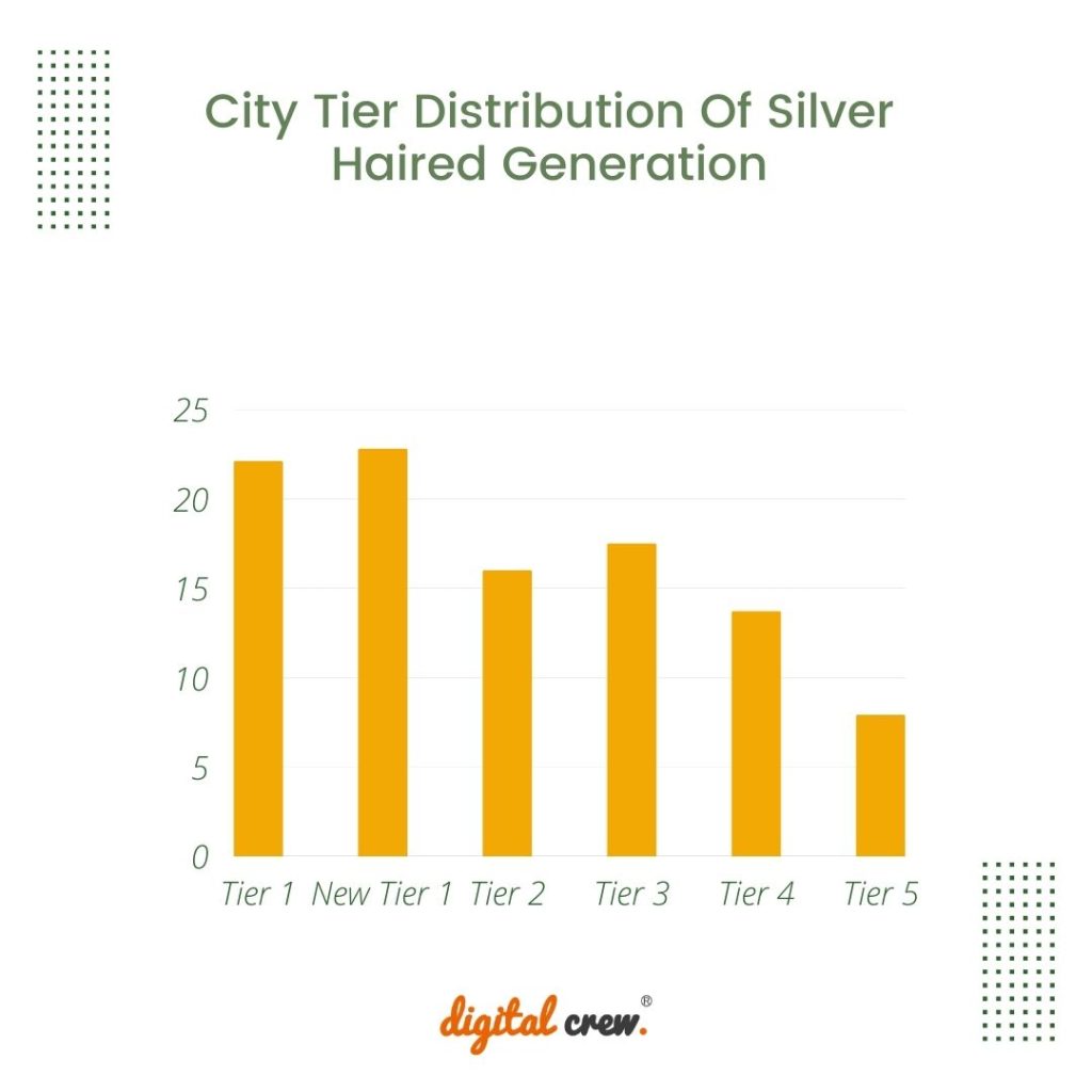 There are far more females than males among these senior citizens (57.1% vs 42.9 %). Around 43% of senior netizens are from Tier 1 and Tier 2 cities. The above-mentioned “active seniors” are mostly found in Tier 1 cities.