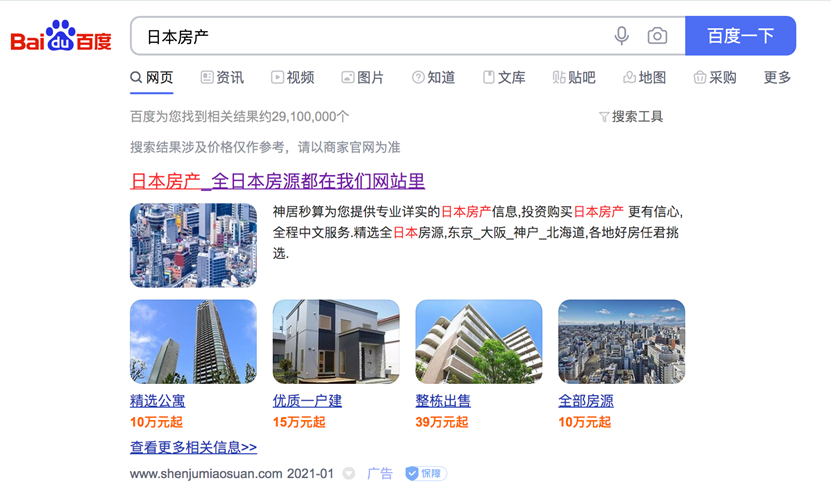 Baidu is China’s search engine giant, it’s the first choice for people to search for information. Therefore, international real estate can also use Baidu to enter into the Chinese market.