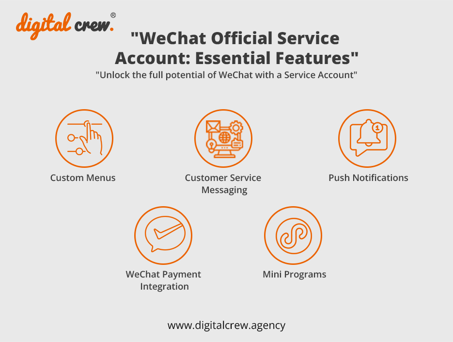 Ready to conquer the WeChat universe? Let Digital Crew be your trusty sidekick! Our expert team can guide you through every step of the WeChat Official Service Account application process. Plus, we are a WeChat marketing agency that will help you create magical marketing strategies that engage your audience and grow your business.